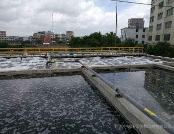 (2)接觸氧化池:調(diào)節(jié)池后出水自流至接觸池進(jìn)行生化處理,接觸氧化時(shí)間可達(dá)6小時(shí),填料為半軟性填料(即以硬性塑料為支架,上面縛以軟性纖維),它可以防止生物膜生長(zhǎng)后纖維結(jié)成球狀后減小填料的比表面積,易結(jié)膜、不堵塞。
